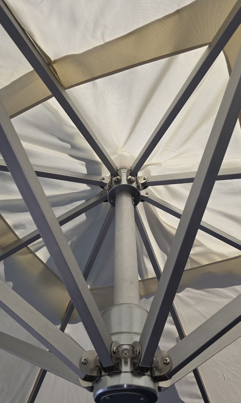 Parasol zewnętrzny wspornikowy „XL”, jednokopułowy, kwadratowa kopuła 3x3m